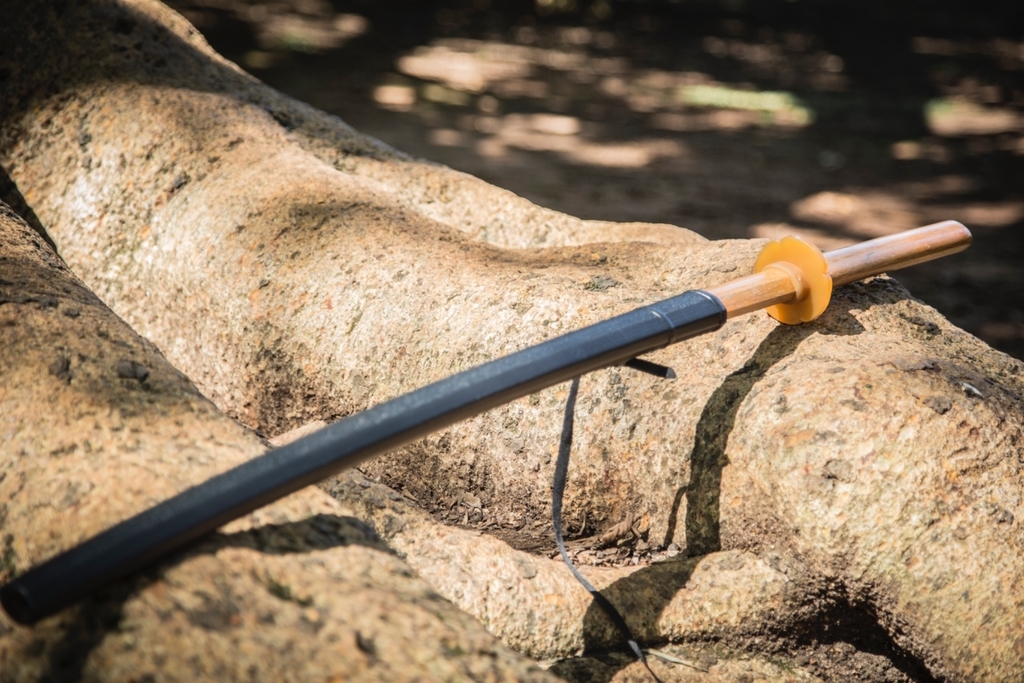 Bainha feita em plástico para a prática de IADO (a arte de embainhar e desembainhar a espada). Todos os nossos bokutos/bokkens se encaixam perfeitamente nesse saya. Vem completo com sageo.